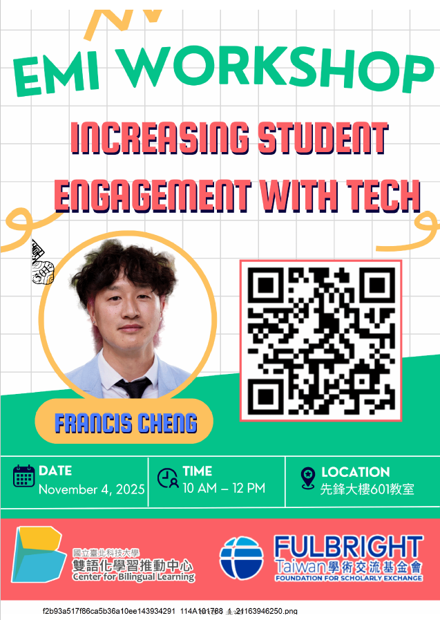 國立台北科技大學辦理「Fulbright EMI workshop Increasing Student Engagement with Tech」 歡迎踴躍參與